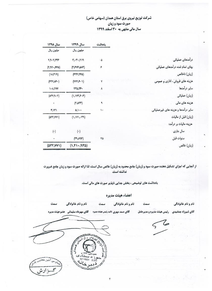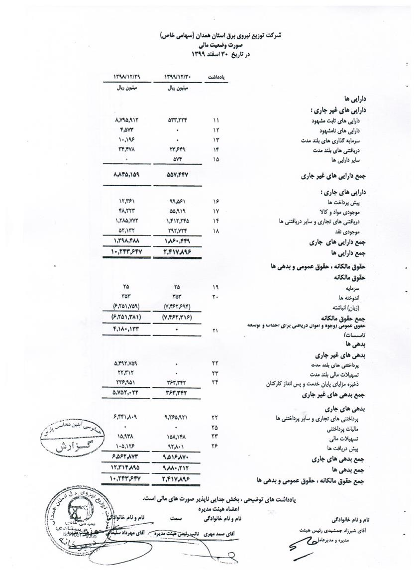 گزارش تراز نامه در سال 1399