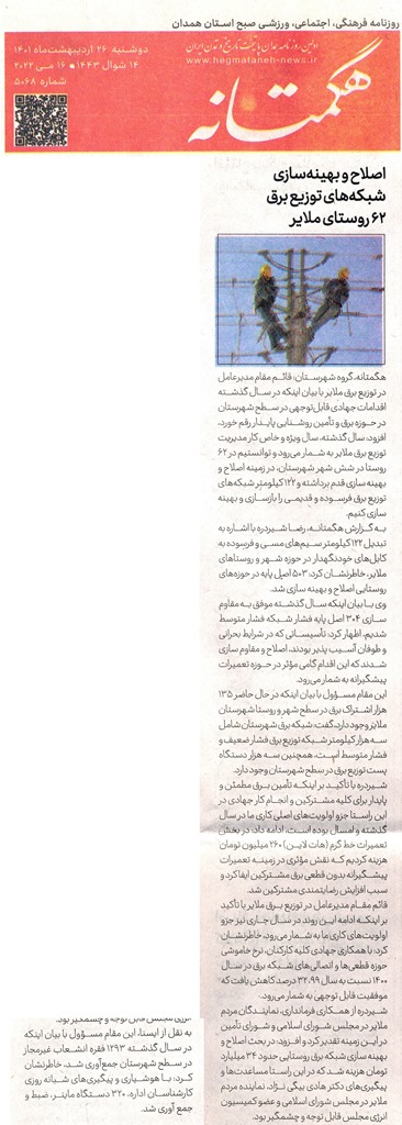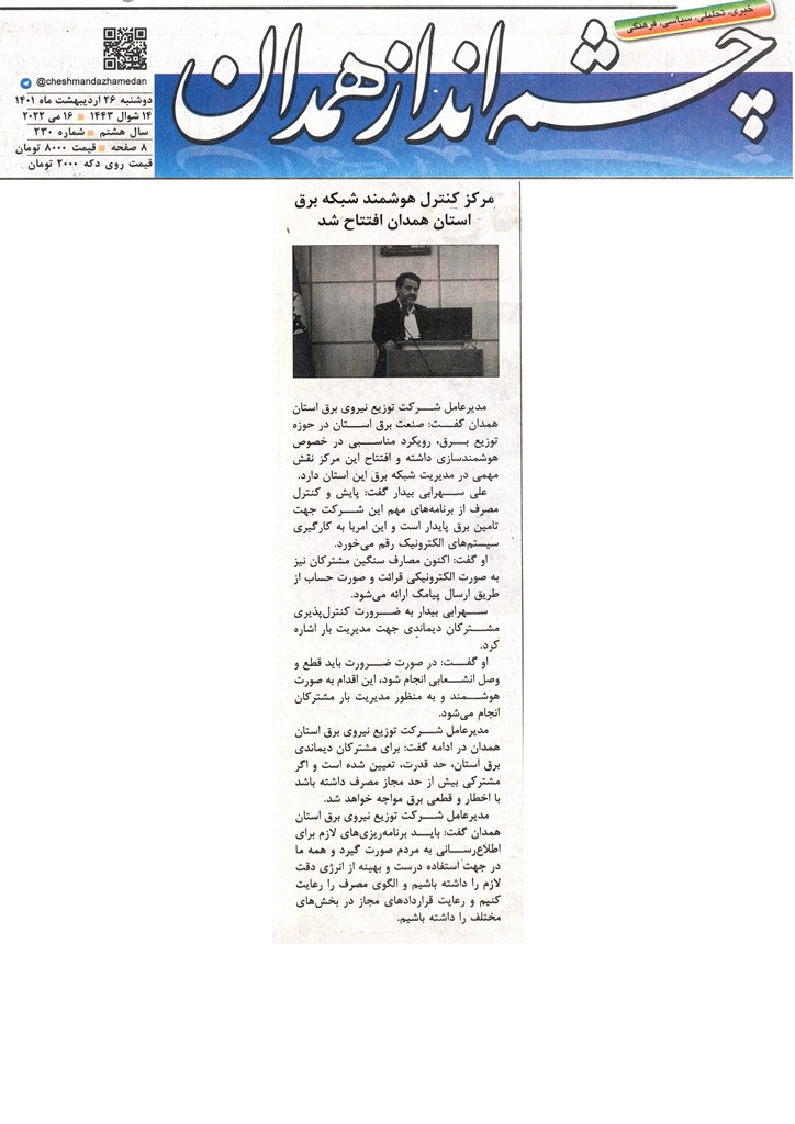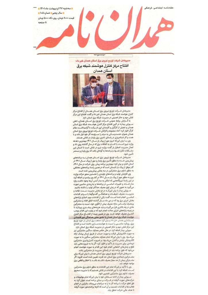 شرکت سهامي مديريت توليد، انتقال و توزيع نيروي برق ايران © کلیه حق و حقوق مادی و معنوی این سایت، متعلق به شرکت توزیع نیروی برق همدان می باشد.