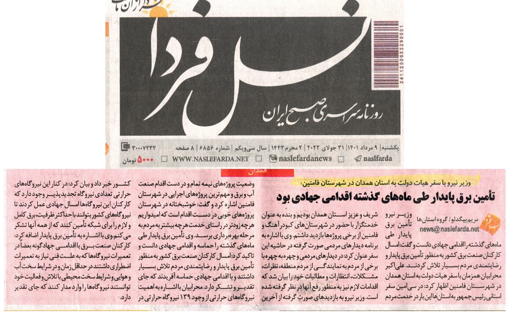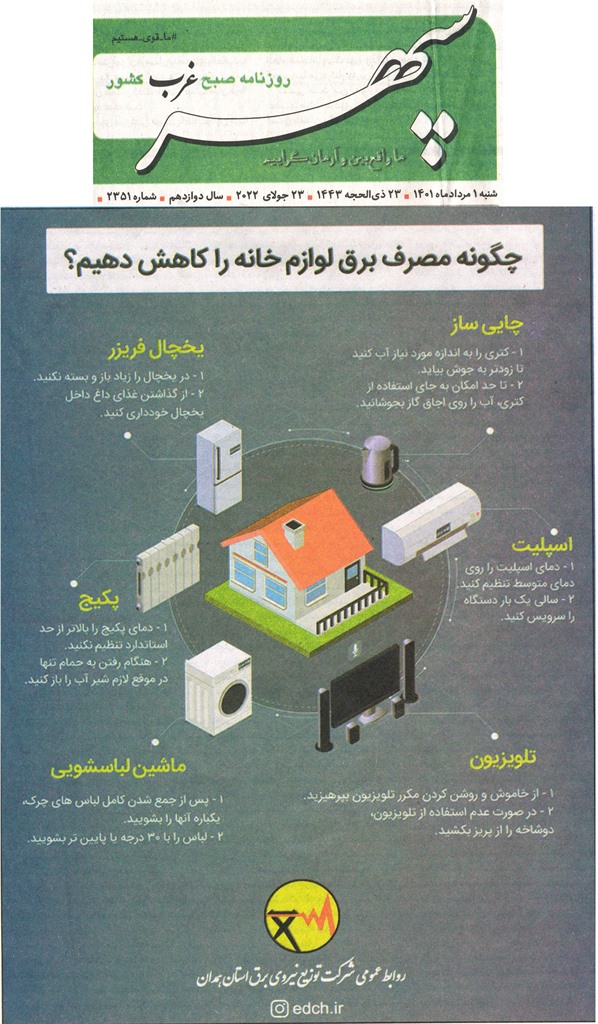 شرکت سهامي مديريت توليد، انتقال و توزيع نيروي برق ايران © کلیه حق و حقوق مادی و معنوی این سایت، متعلق به شرکت توزیع نیروی برق همدان می باشد.