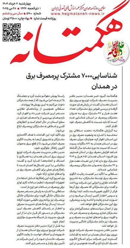 شرکت سهامي مديريت توليد، انتقال و توزيع نيروي برق ايران © کلیه حق و حقوق مادی و معنوی این سایت، متعلق به شرکت توزیع نیروی برق همدان می باشد.